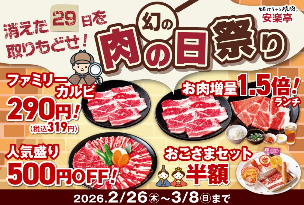そんな想いから、安楽亭は“幻の肉の日”として今月も肉の日祭りをお届けします!