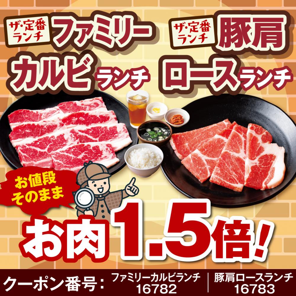 【ランチ】対象メニューお値段そのままお肉増量1.5倍!